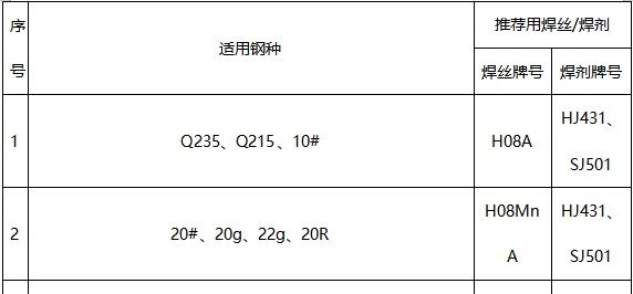 常用钢材埋弧焊焊丝焊剂匹配推荐表